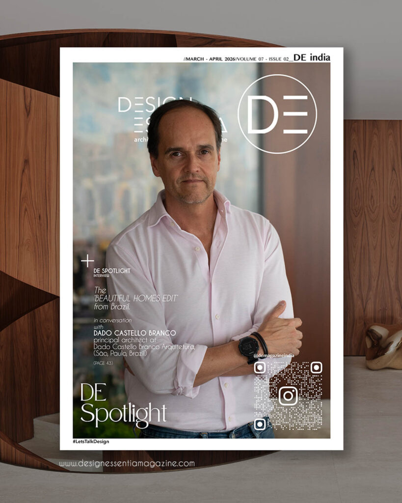 We also speak with architects shaping contemporary homes—each project offering a distinct interpretation of beauty and belonging. Beyond spaces, our DE Products section brings together a curated selection of collectible objects from India and Milan—pieces that elevate interiors not through excess, but through meaning and presence.