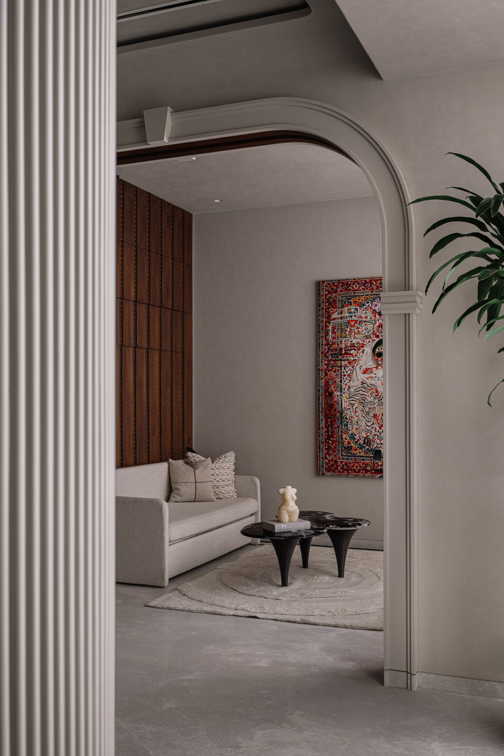 A skyborne sanctuary of light and texture in Mumbai.